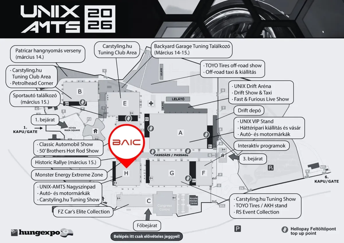 A BAIC stand a Hungexpo H Pavilonjában vár. Keresd a modern SUV-k és terepjárók új generációját.